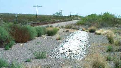 Site has been maintained since 1881 by Texas & Pacific Rail road. Base of pea sized gravel covered with neat row of hard cliche rock that has been painted white many times! One more Heritage site has been preserved for the following generations to know & enjoy.